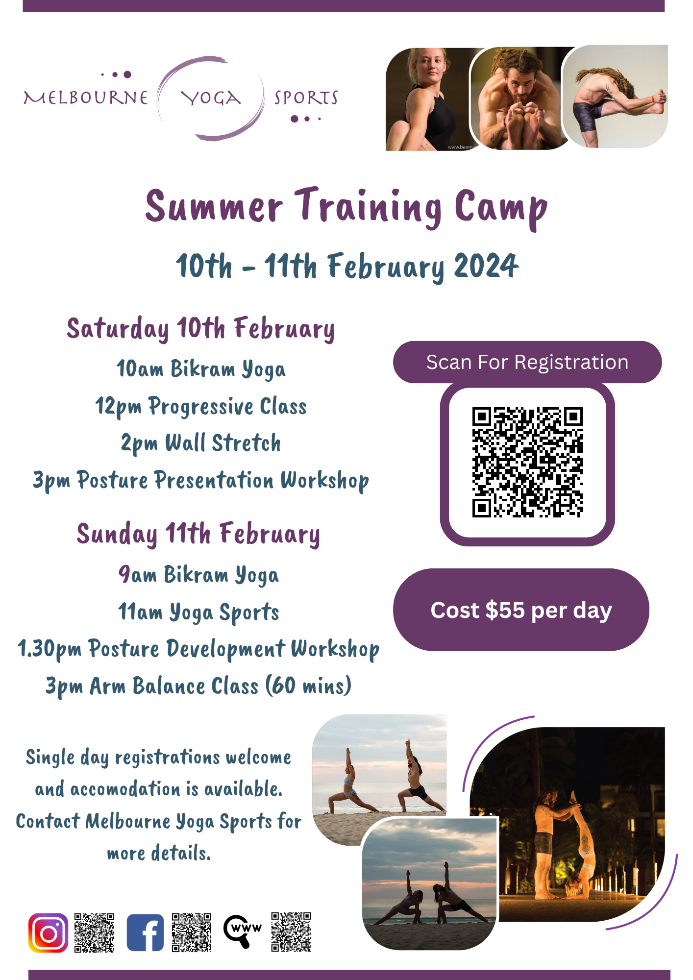 Come, yogi friends, join us for our Summer Training Camp - let’s get together to train, get corrections, and track our progress. Also, a great opportunity to get routine coaching and preparation for the competitions this year!!
